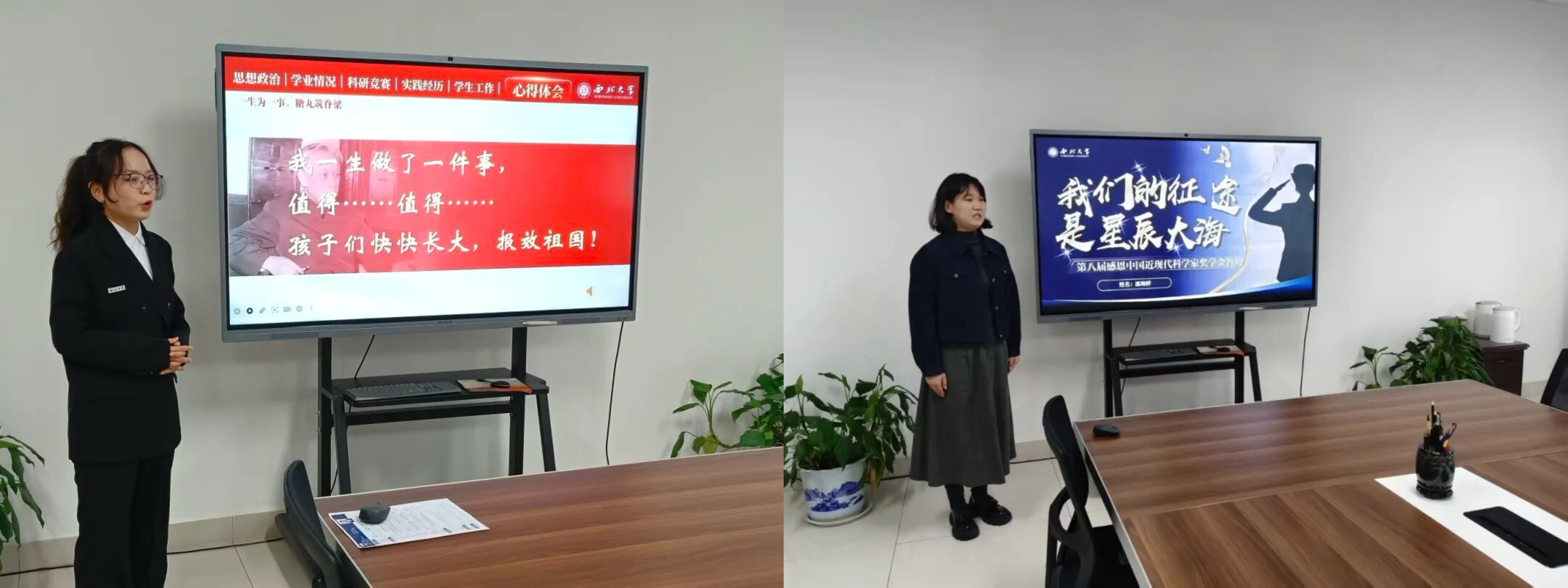 本次会议由学生抽签介绍、学生个人陈述以及院系评审点评三个环节组成。会议伊始,六位同学依次抽取一位科学家,围绕其生平事迹、卓越贡献及个人感悟展开生动介绍。随后,六位同学结合学习科学家精神的深刻体会,回溯成长足迹,讲述奋斗历程,充分展现了自身的学习能力、综合素质与青春风采。最后,评审老师就答辩内容进行了点评与提问。
