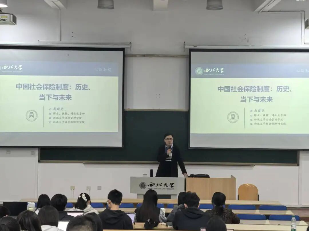 2025年10月15日晚19:00,西北大学公共管理学院聂建亮教授在多媒体教室为我院2025级全体硕士研究生作了题为“中国社会保险制度:历史、当下与未来”的专题讲座。