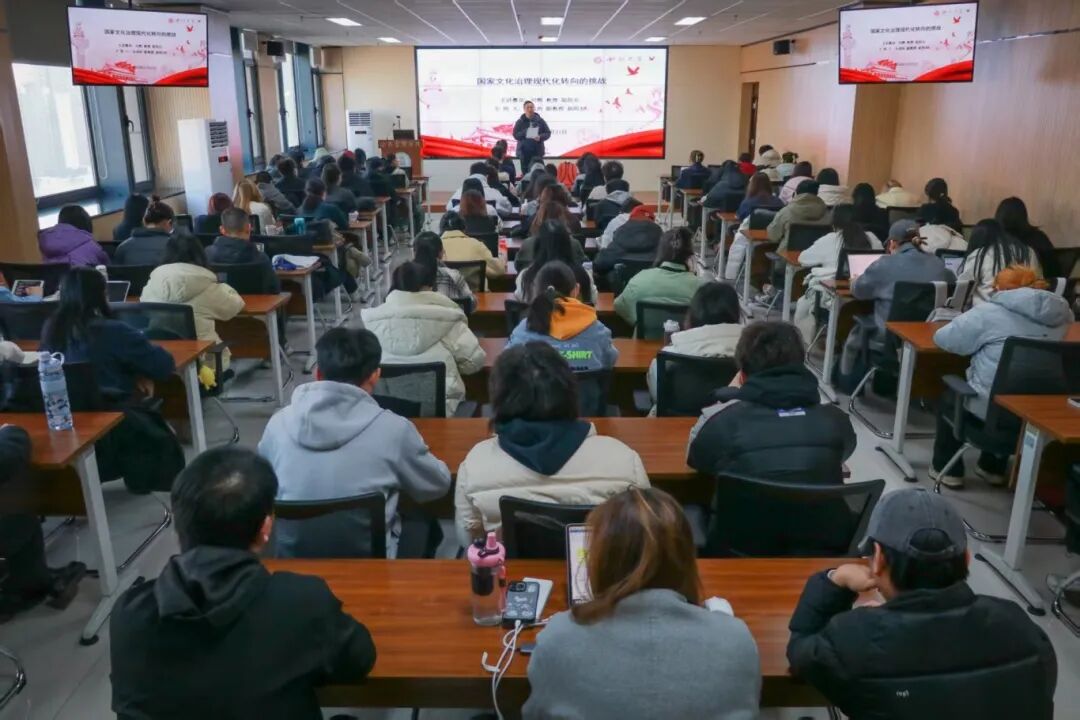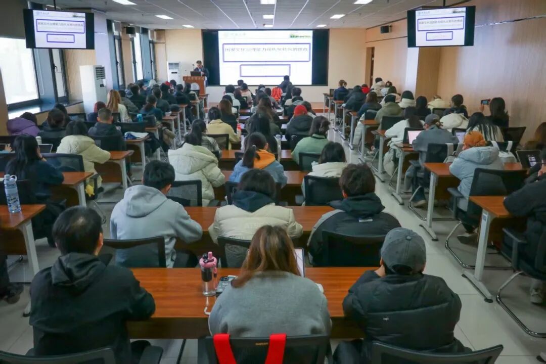 2025年11月21日上午,我院主办的“紫藤新语·公共管理学术工作坊”第十期于西学楼13层多媒体会议室成功举办。河南大学哲学与公共管理学院刘辉教授受邀向我院师生作了《国家文化治理现代化》的学术经验分享。本次讲座由我院岳成浩副教授主持,近百名师生参与了此次活动。