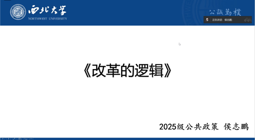 2025级公共政策专业硕士研究生侯志鹏分享的书籍是周其仁所著的《改革的逻辑》。侯志鹏同学的汇报围绕相关书籍展开,结构清晰、内容详实,主要从以下几方面层层推进:第一,详细介绍了书籍及作者背景,指出该书立足现实世界,以扎实的经济学功底为支撑,凭借风趣直白的文字风格,对中国改革的核心理念、实践方法与发展历程进行了严密且逻辑清晰的梳理,让复杂的改革逻辑易于理解。第二,梳理了书中观察中国改革实践的独特视角,重点解读了“产权明晰”“制度适应性演进”等核心观点,并结合农村土地承包、价格双轨制等书中经典案例,深入探讨了改革如何在现实约束条件下突破瓶颈、寻找可行路径的内在逻辑。第三,系统梳理了中国改革开放数十年间面临的各类问题与发展困境,并对应介绍了不同阶段的改进思路与实践措施,展现了改革的持续性与阶段性特征。