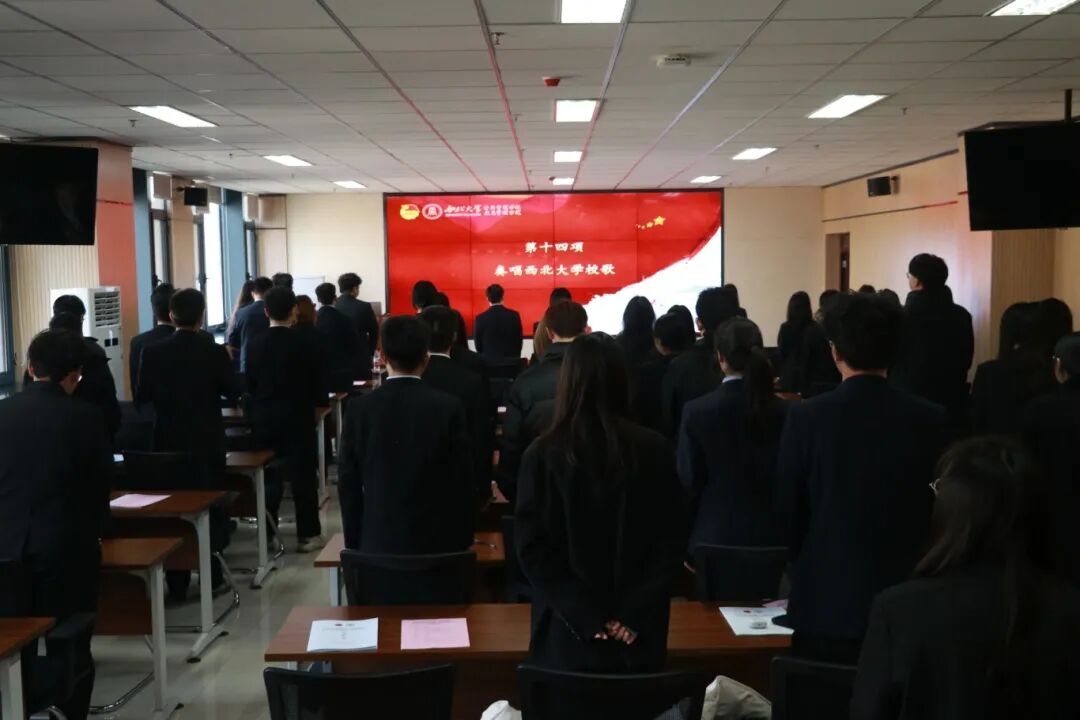 会议第十四项,樊思甜同学宣布大会闭幕,并向与会成员表示衷心感谢。全体起立奏唱《西北大学校歌》。
