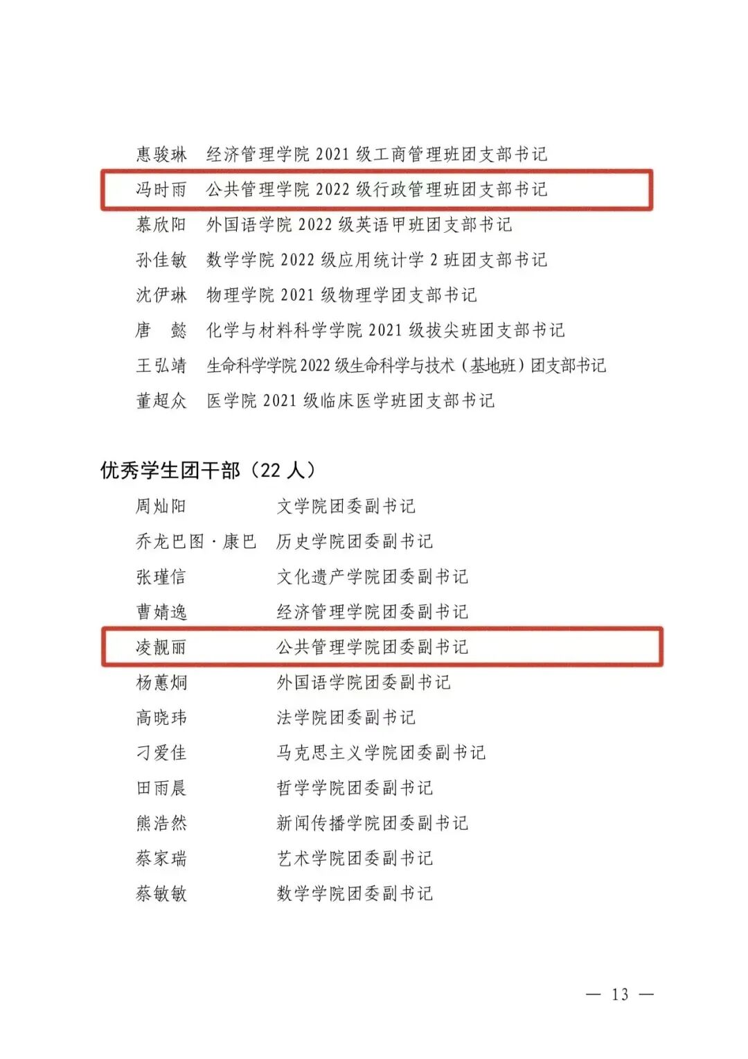团学聚力,夯基固本搭建青年发展平台。学院团委以加强思政引领、培育青年骨干为导向,围绕学院中心工作、服务发展大局,依托团支部“三会两制一课”与青马班团课培训,分批分层深入开展各类理论学习活动;同时夯实基层组织建设,创新推进纵向支部建设,持续深化班团一体化建设,实现跨年级团学工作交流,进一步完善“智慧团建”系统组织架构。在2025年度五四双评中,我院团委获评校级“五四红旗团委”,2023级行政管理班团支部获评西北大学五星级团支部,冯时雨获评校级“十佳团支部书记”,凌靓丽获评校级“优秀学生团干部”,张佳音等21名团员获评校级“优秀共青团员”。