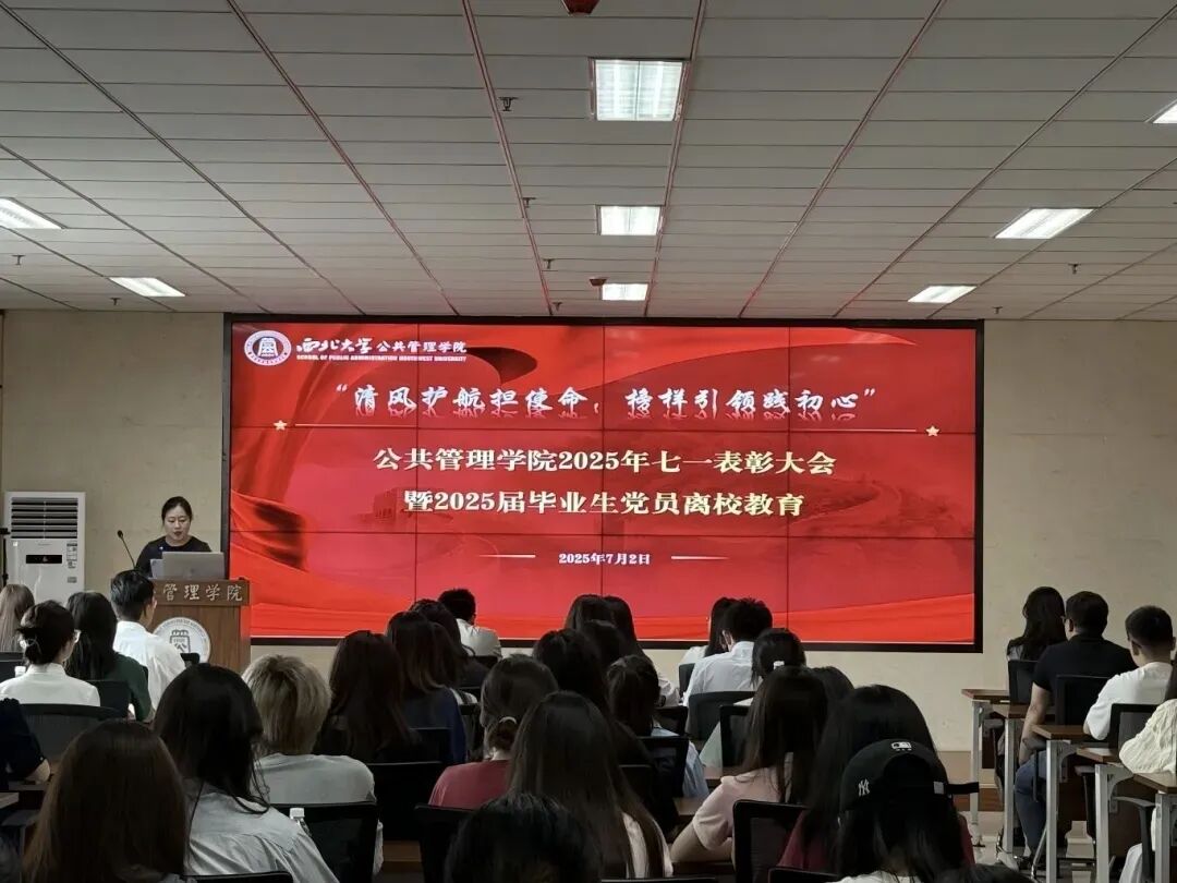 在党性提升方面,强化先进典型的示范引领作用,学院隆重举办“七一表彰大会暨2025届毕业生党员离校教育”活动。大会庆祝中国共产党成立104周年,回溯党的光辉历程,传承党的优秀传统,对2025届毕业生党员进行深刻的党性教育。活动明确要求每一位入党积极分子、党员,尤其是毕业生党员,都要将学习中央八项规定精神作为重要政治任务,进一步筑牢纪律观念,增强自我管理能力,提升拒腐防变的“免疫力”。通过表彰先进、激励后进、教育党员的有机统一,学院将党员教育管理与学风建设紧密结合,引导毕业生党员在离校之际筑牢思想防线,以更高标准严格要求自己,在未来的工作岗位上继续发挥先锋模范作用。
