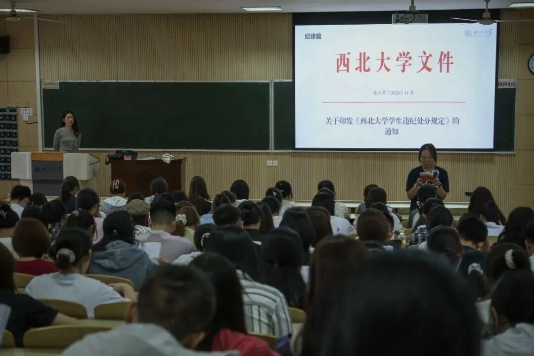 规范新生入学教育管理,筑牢大学伊始思想根基,学院举行2025级本科生及研究生新生见面会,向2025级新生详细介绍了学院整体情况、专业特色与发展前景、相关管理规范等,同时共同学习了《西北大学学生违纪处分规定》文件,强化新生纪律意识,为新生们的大学生活提供指导,助力新生扣好大学阶段的“第一粒扣子”。