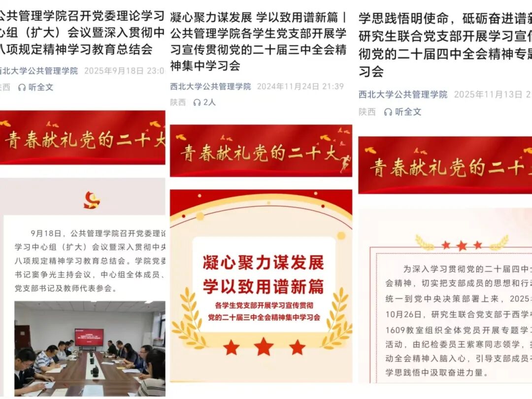 学风作为大学精神的鲜明底色和人才培养的坚实基石,始终是高等教育发展的关键支撑。公共管理学院始终高度重视学风建设工作,将其置于学院发展的核心位置,紧密围绕立德树人这一根本教育任务,秉承“公诚勤朴”的校训精神和“正学善行”的院训理念,深入贯彻落实学校《西北大学关于进一步加强新时代本科学生学风建设的意见》《关于开展“携手砥砺奋进共创优良学风”学风建设主题活动的通知》以及《西北大学关于进一步推进学风建设的安排意见》等相关通知文件精神,以培养具备“人文情怀、社会责任、创新能力和国际视野”的高素质公共管理人才为目标,多措并举持续优化学风生态,推动构建全员参与、全过程融入、全方位协同的育人工作格局,努力打造常态化、长效化的学风建设机制。