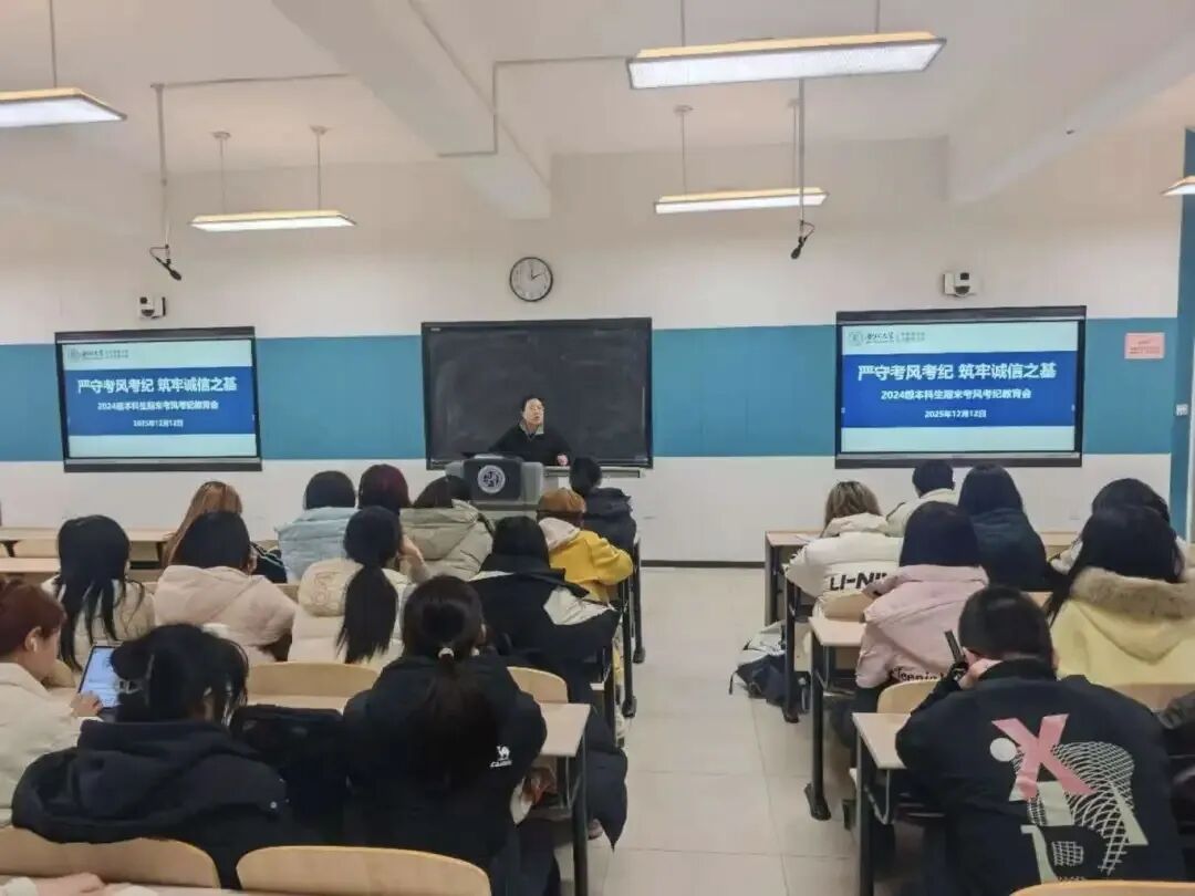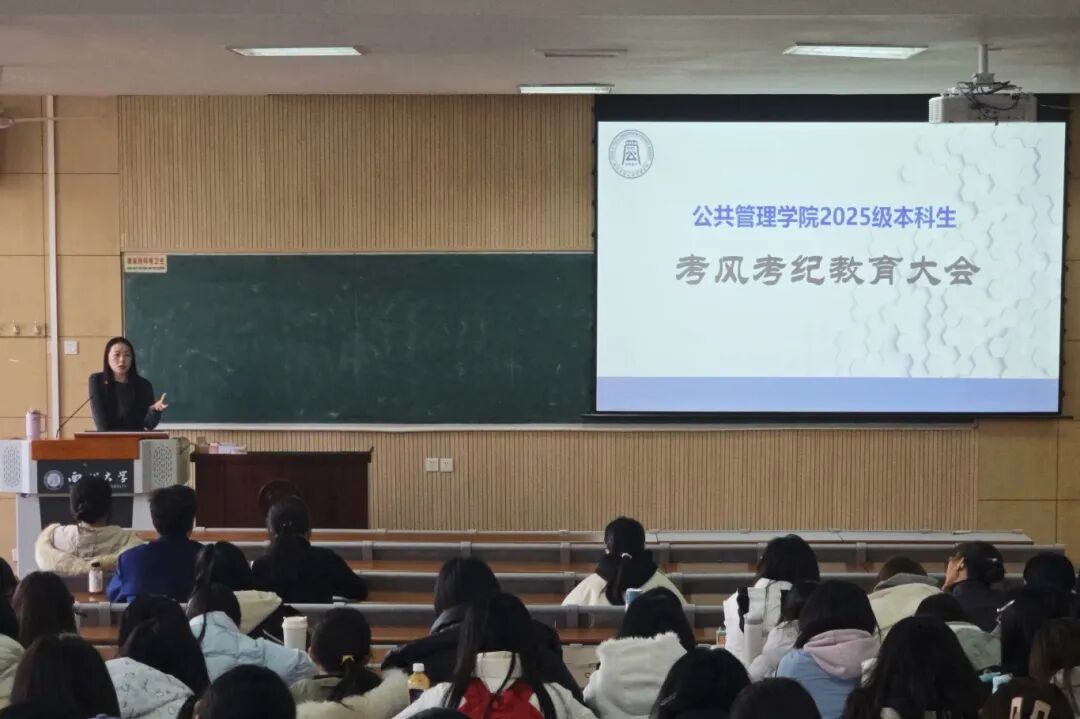 为营造“诚信有我不作弊”的考风考纪环境、提振备考士气,公共管理学院各本科年级分别召开考风考纪教育主题宣讲暨期末考试动员会。各本科生辅导员聚焦校级文件核心要求,对考试作弊处理规定进行重点解读,以真实处理通报为案例开展警示教育,明确违纪行为对学业记录、评优资格乃至未来发展的严重影响。同时,辅导员们还贴心提醒同学们,要合理规划复习进度、调整备考心态,以扎实准备应对考试挑战,以诚信品格守护学业尊严,将考风考纪要求转化为主动备考的自觉行动,将诚信考试与积极备考相结合,为学院营造严谨务实、拼搏向上的期末氛围。