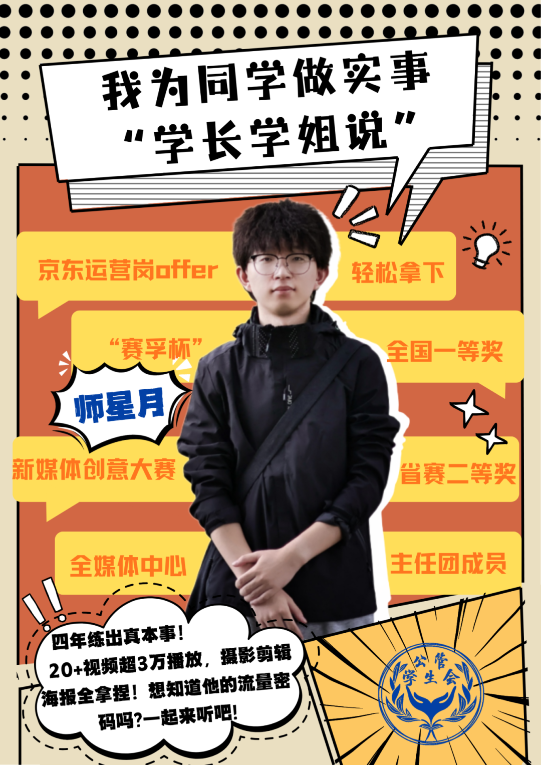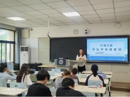 搭建朋辈互助桥梁,开展“朋辈灯塔·前路有光”经验交流会、“学长学姐说”系列分享活动,覆盖求职就业、考研考公、学业发展等多个板块,邀请保研学子、高年级优秀学子围绕课程学习、科研实践、升学就业等主题分享经验,为低年级学生提供可借鉴的成长路径;举办“国奖面对面”分享会,邀请博士、硕士阶段国家奖学金获得者分享学术科研与成长经验,激发学子奋进动力。