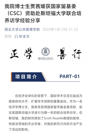 在学术科研实力提升及高层次培养人才成效方面,席恒教授、翟绍果教授两篇论文被人大复印报刊资料同期转载,学术影响力持续提升;翟绍果教授出席第十九届社会保障国际论坛,李静教授研究成果斩获2024年陕西省总工会、教科文卫体优秀成果双一等奖,学院新增4项国家社科重点等国家级项目,科研实力稳步增强。博士生贾茜媛获国家留基委资助赴斯坦福大学联合培养,为学院国际化人才培养注入活力。