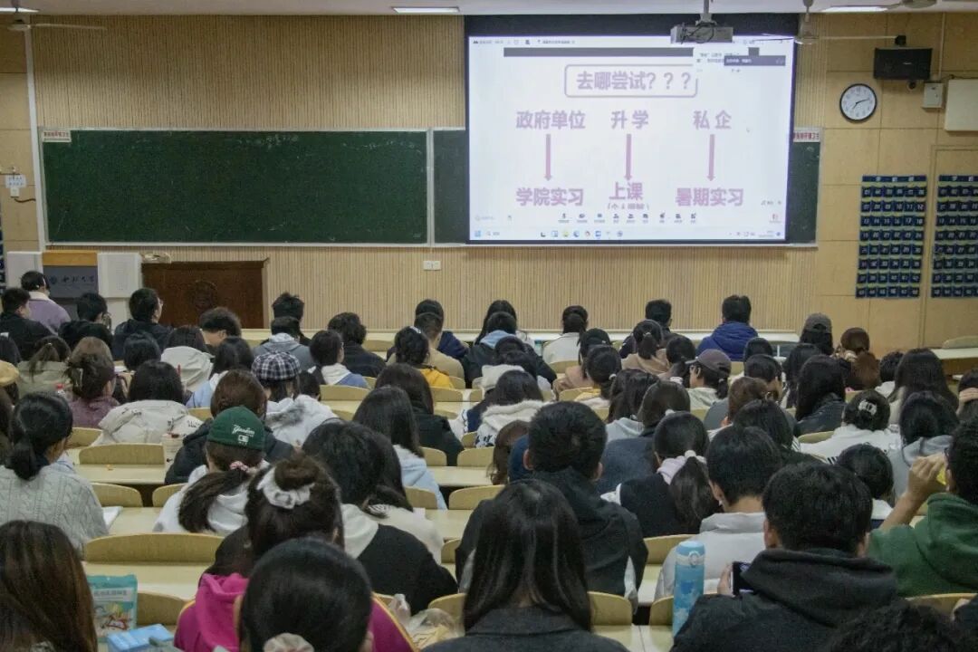学院针对低年级学生开展“大学新生如何适应大学生活”主题讲座,从学业规划、人际交往、心理调适等方面提供指导,帮助其顺利完成角色转变;为中高年级学生搭建学术交流平台,通过科研方法培训、论文写作指导等活动,提升学术研究能力。