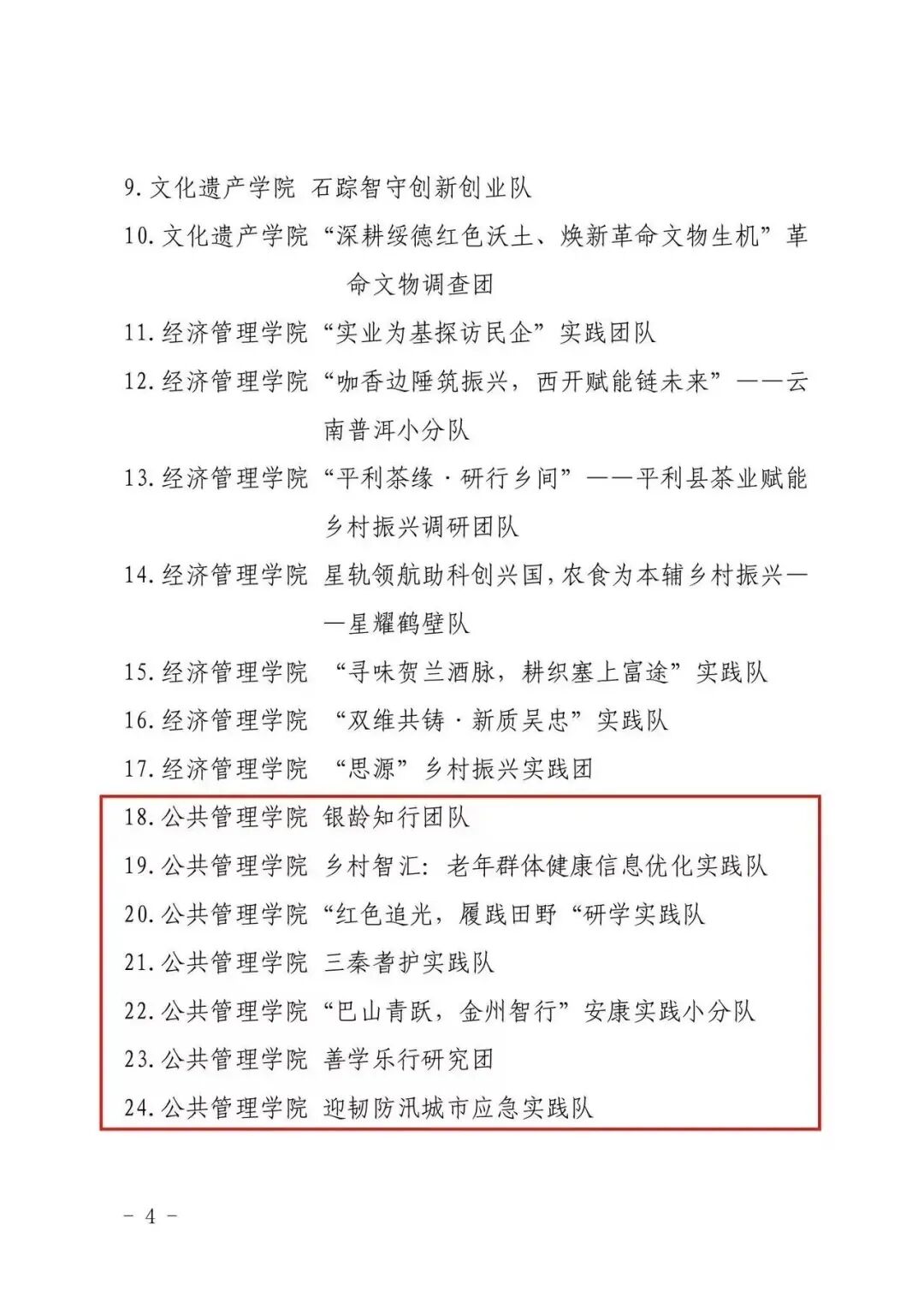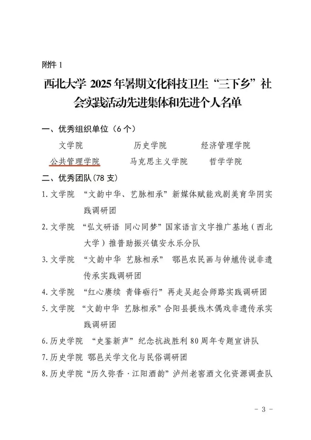 在深化实践育人环节,学院推动知行合一落地见效。寒假期间,组建40支实践队伍,参与学生达263人次,开展“滋兰树蕙薪火相传”校友走访、“西大学子在基层”专项计划、“实践青春砥砺奋进”政府见习等活动,4个团队获“标兵团队”称号,8个团队获“优秀团队”称号,42位同学获“先进个人”称号。暑期“三下乡”社会实践活动蓬勃开展,组建47支实践队伍,参与人数达314人次,在乡村振兴、社区治理、非遗保护、应急管理等领域开展调研实践,学院获“优秀组织单位”称号,7支队伍获校级“优秀团队”称号,5位老师获“优秀指导教师”称号、48名学生获校级“先进个人”称号,1个调研报告被评为“优秀调研报告”。