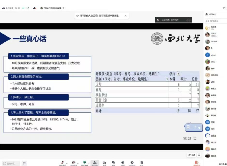 在学业发展领域,学院精准搭建成长指引平台,为学子科研与学业规划注入动力。持续推出“保研学子有话说”系列经验分享活动,覆盖目标定位、院校选择、复习规划、面试准备等全流程,通过文字图片等形式,直观呈现不同专业保研学子的成长路径与实战心得。为同学们清晰指引科研与成长方向,更以身边榜样的力量激发学习热情,在学院内营造“向优秀看齐、向卓越奋进”的浓厚学风,为学业质量提升奠定坚实基础。