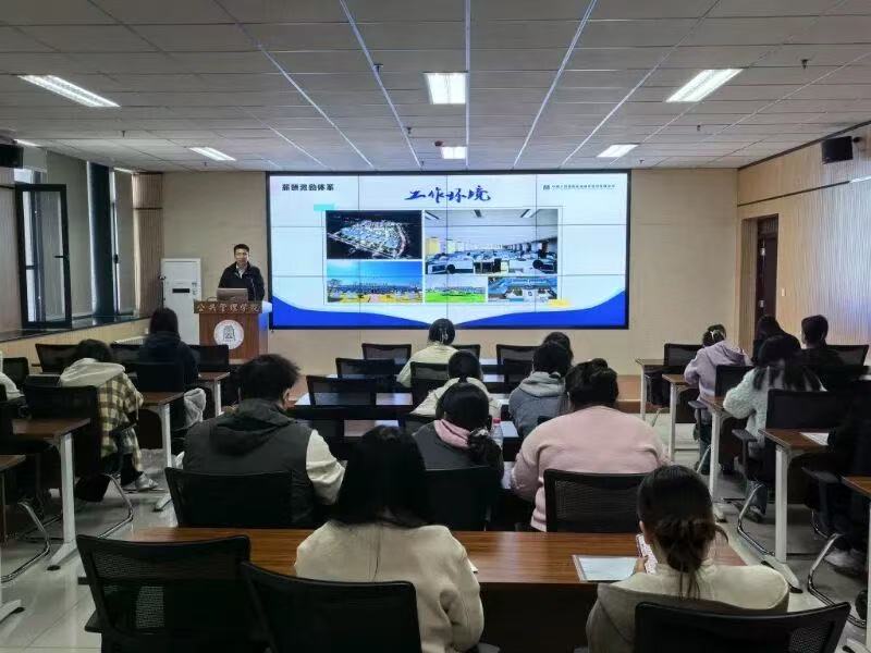 宣讲过程中,企业代表详细介绍了公司发展历程、组织架构、薪酬福利体系及招聘流程,重点解读了“基储星”专项培养计划——优秀学子可享见习期缩短、职级破格提升等福利,以及名师带徒、核心岗位轮岗的个性化培养。此次宣讲紧扣学院专业特色,重点推介职能管理类核心岗位,涵盖行政管理、人力资源管理等公共管理方向,同时开放金融财务类等岗位招聘,招聘条件、职业发展路径与学院人才培养方向高度契合。