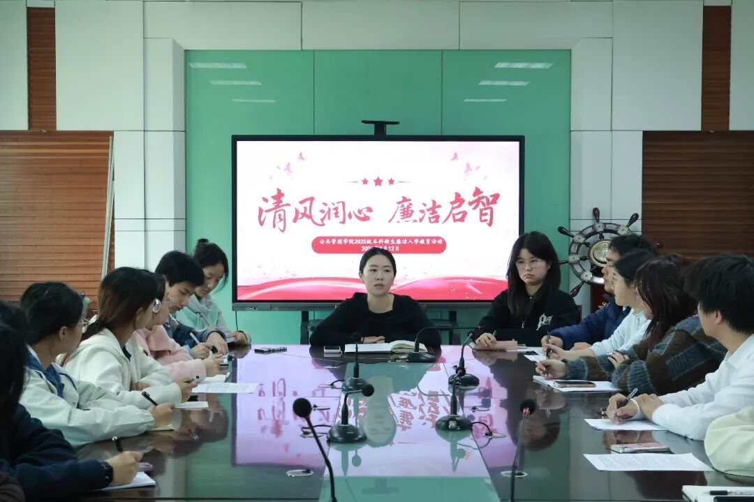 此次廉洁入学教育活动,通过中央八项规定精神学习、总书记重要论述研读、廉洁教育视频观看、典型案例研讨交流等环节,推动廉洁意识入脑入心,为2025级新生学生干部上了一堂生动的廉洁第一课。活动深刻揭示了廉洁是从政之本、也是为人之基的核心主旨。清风徐来,廉韵悠长。愿每一位公管学子,都能在未来的道路上,心有敬畏、行有规矩,以青春之我、奋斗之我,书写无愧于时代的廉洁答卷。
