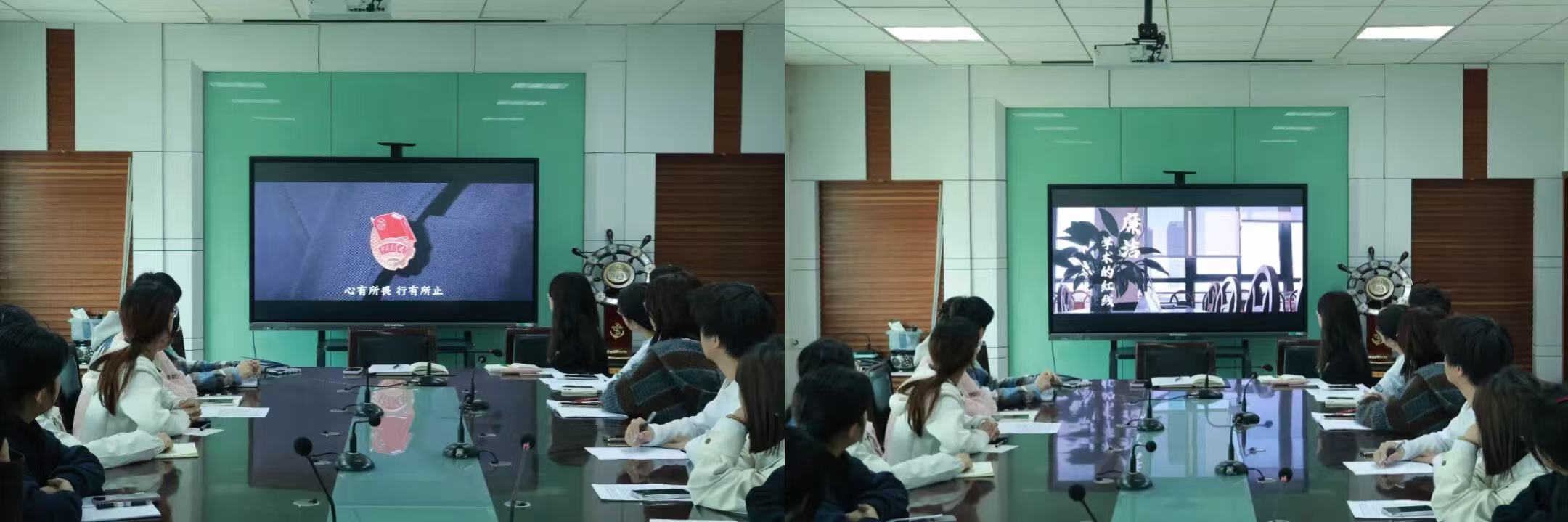 理论学习后,全体与会人员共同观看了廉洁教育主题微视频。视频通过生动的情景再现,展现了规矩如圆规、唯有心存规矩才能画好人生之圆的深刻寓意。从考场上的诚实答卷,到学生会工作中的公平公正,再到学术研究的踏实严谨,廉洁从来不是遥不可及的大道理,而是藏在每一次微小选择中的那份坦然底气。