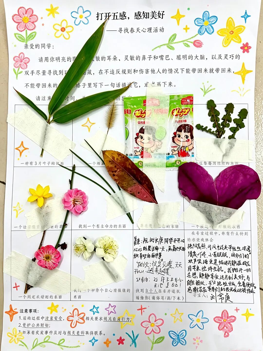 2. 五感寻春:发放“五感寻春校园行”打卡地图,参与者自行在校园内完成打卡任务,完成后由工作人员盖章,完成即可得第一枚章。