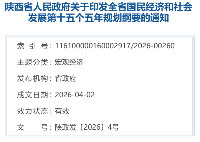 (陕西省人民政府关于印发全省国民经济和社会发展第十五个五年规划纲要的通知)