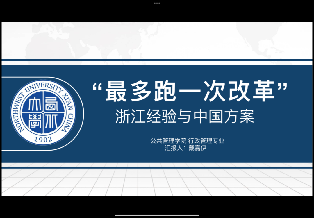 2024级行政管理专业硕士研究生戴嘉伊分享的书籍是郁建兴教授的《“最多跑一次改革”——浙江经验,中国方案》。该书聚焦的“最多跑一次”改革被称作“全球公共管理改革的中国前沿”,既破解中国现实治理难题,也更具世界意义。她从改革缘起、进展与成效、撬动效应、政策扩散、管理保障及中国方案六方面展开分享:改革是浙江1992年起多阶段探索的结果,2016年正式提出“以人民为中心”核心理念,实现从“政府中心”到“民众中心”的根本转向,成效显著但仍面临线上服务优化等挑战;改革在经济、社会、权力运行机制领域产生撬动效应,2017年起从浙江扩散至全国,形成政策学习与趋同现象;改革落地依托纵向领导、横向协调、信息反馈三大治理机制,更为全球公共管理改革提供了“以民众为中心”的中国方案。 闫晓萌博士对其汇报做出点评。她认为该汇报结构严谨、逻辑清晰,从多维度层层递进梳理改革脉络,内容兼具实践深度与理论高度,结合数据和政策案例强化了说服力,还将地方经验与全球公共管理难题结合,凸显改革普适价值。同时指出,若能进一步结合当下数字化政务新实践展开分析,汇报的现实针对性与前沿性会更为突出。