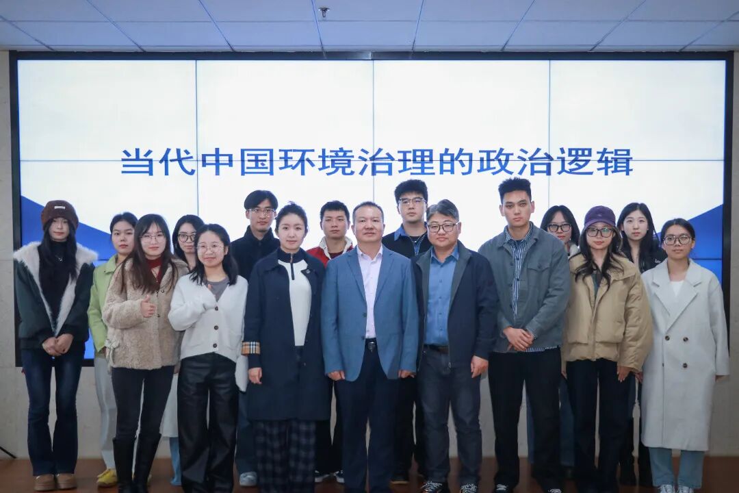 随后,余敏江教授围绕我国环境治理的成效、核心逻辑、现存问题及推进路径四大板块展开深入讲解。在环境治理成效方面,他用详实数据呈现“天更蓝、水更清、山更绿”的显著成果。在核心逻辑解析环节,余敏江教授提出三大关键逻辑:一是注意力政治逻辑,强调核心行动者的关注是环境治理进入议程的前提,通过党代会关键词演变、领导部署等体现,其竞争机制包含自上而下的政策激励与自下而上的公众参与;二是承认政治逻辑,以平等参与为核心,构建政府、企业、社会和公众共同参与的治理体系,呈现环保NGO的主体赋能、公民环保意识从义务到责任的转变;三是责任政治逻辑,通过“党政同责、一岗双责、终身追责”、中央环保督察三级推进、河(湖)长制等专项制度,压实环境治理责任。针对当前治理体系存在治理主体原子化生存与协同困境、地方政府的约束薄弱与责任脱耦等问题,余敏江教授提出四大推进路径:主体进阶实现“和合共生”与“自主进化”,结构重塑兼顾“去中心化”与“再中心化”,资源再造结合“聚合体制”与“分散创新”,方式转型从“刚性规制”走向“韧性治理”。