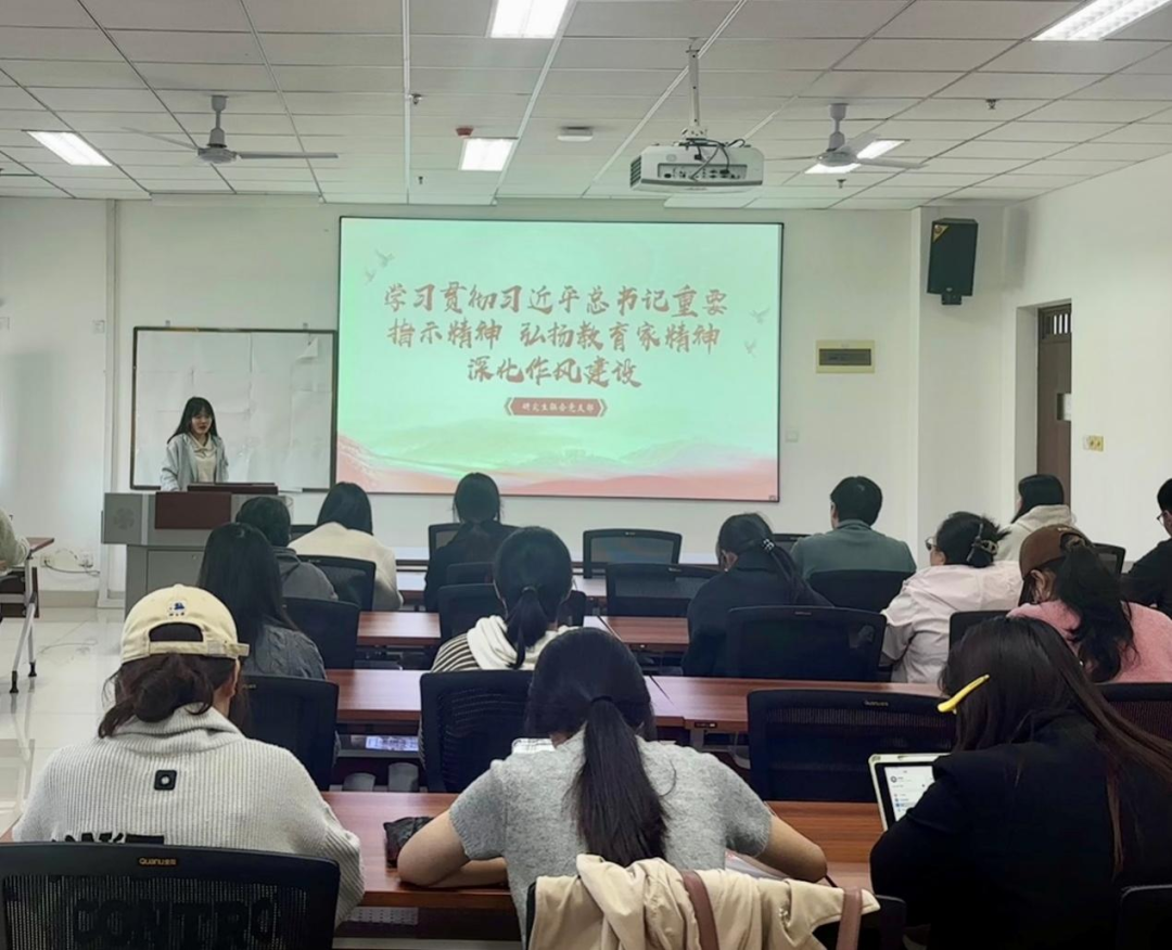 为不断深化作风建设成果,推动全面从严治党向更深层次、更广领域迈进,并带领支部党员深刻领悟“教育家”精神内涵,九月下旬,研究生联合党支部召开专题学习会,学习内容包括习近平总书记关于作风建设重要指示精神及给全国特岗教师代表的重要回信精神。本次专题学习会由支部组织委员吕可嘉同志与宣传委员曾为嘉同志领学。