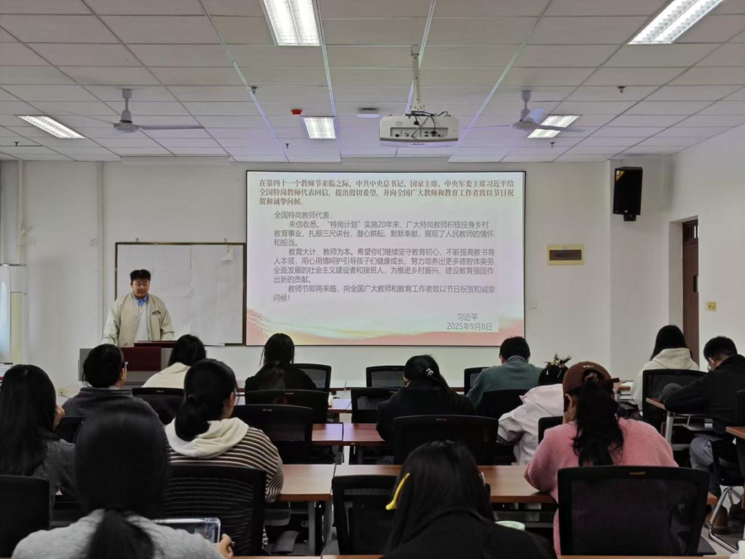 曾为嘉同志带领支部党员学习了习近平总书记给全国特岗教师代表重要回信精神。带领全体参会党员共同学习了习近平总书记重要回信全文,他指出,信中习近平总书记充分肯定了“特岗计划”实施20年来,广大特岗教师投身乡村教育、扎根讲台、默默奉献的情怀与担当,鼓励教师坚守教育初心,提升教书育人本领,为乡村振兴与教育强国建设作出新贡献,同时向全国教师和教育工作者送上节日祝贺与问候,这也正是习近平总书记对广大教育工作者提出的期望,他号召着广大青年学子要到祖国最需要的地方去发光发热。