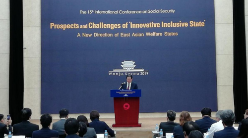 2019年9月7-8日,由韩国社会政策学会、中国社会保障学会、日本社会政策学会联合主办的第十五届社会保障国际论坛在韩国原州市举行。本届论坛的主题为“创新、包容型国家的前景与挑战:东亚福利国家的新方向”。韩国政府副总理俞银惠、中国社会保障学会会长郑功成、日本大分大学教授阿部诚、英国约克大学教授哈德森为本次论坛作主旨报告。来自中国、韩国、日本、英国、法国等国近百所高校以及国际劳工组织、韩国卫生与福利部、韩国教育部、国民健康保险公团等机构的100多位专家学者出席会议。民政部政策理论研究基地合作单位,西北大学公共管理学院雷晓康教授、翟绍果教授出席本次会议。